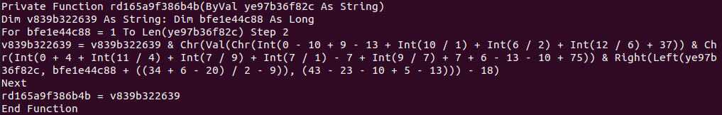 So basically the cell-data decrypted is just a Powershell command, which itself is encrypted. At least you get the context of the macro of what it does, and Powershell is another beast I might challenge later.