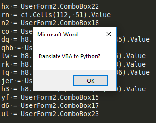 This will probably by the last post about vba2python for a while. This time we’ll walk through 3 samples, look at the output and the various challenges they contain trying to convert this to Python 3.x